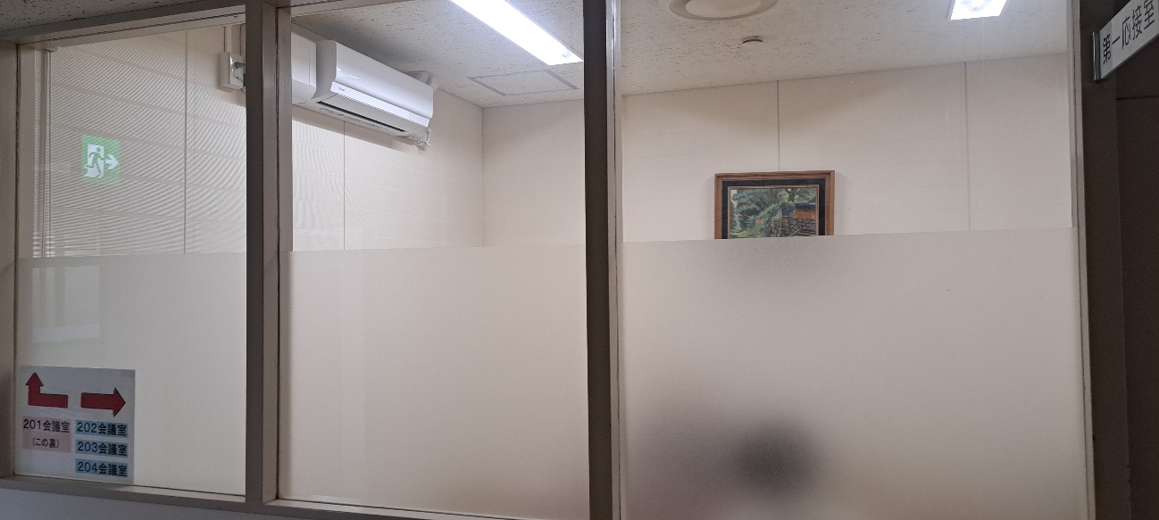 打ち合わせや商談中に、部屋の外を通る人の視線が気になり、落ち着いて話に集中できないとのことでご相談をいただきました。特に、人の動きがあるたびに室内の様子を見られているように感じ、業務に支障が出ているとのことでした。